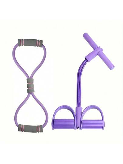Elastic Resistance Band For Yoga Pedal Traction, 8-Shaped Handle, Fitness Resistance Band, Suitable For Abdominal/Waist/Arm/Leg - Purple - View 1