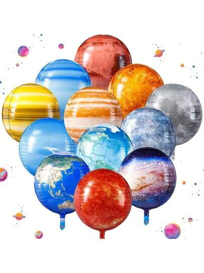 12Pcs/Set Vibrant Space Themed 22Inch 4D Aluminum Foil Balloon Earth And Planetary Design Colorful Galaxy Decorations For Birthday Wedding Graduation Ceremonies Space Party Decorations - Multicolor - View 1