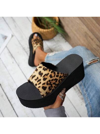 Chunky Platform Leopard & Zebra Slide Sandals, Chic And Sexy Casual Outdoor Summer Wear - Mustard Yellow - View 1