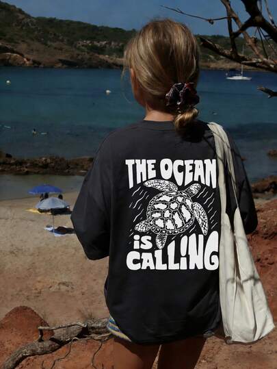 1pc Tween Girls Casual Turtle Print Round Neck Short Sleeve T-Shirt, Summer Student Tween Clothing - Turtle Design T-Shirt Suitable For Daily Adventure, Tween Tween Girls Summer Shirts, Islami Eid Mubarak Ahlan Ramadan - Dark Grey - View 3