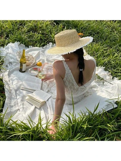 Outdoor Photography Picnic Mat, Travel Picnic Blanket In European & American Style, Beige, Waterproof Camping Mat, Beach Blanket, Tablecloth - White - View 6