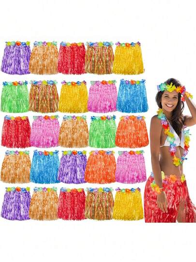 5pcs-Hawaiian Hula Skirt Hawaiian Grass Skirt Tropical Hawaiian Hula Skirt Hawaiian Hula Skirt Costume Summer Beach Vacation Dress Hawaiian Party Gift Ideas Gift Party Decoration Hula Skirt Hula Dance Show With Wreath Hula Skirt,Party Decorations, Hawaiian Party Supplies Tropical Beach Party - Multicolor - View 5