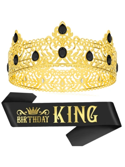 2pcs/Set Birthday King Crown And Sash Ribbon, Royal Gold King Crown For Men Party Decoration Prom Birthday Gifts For Men King Pageant Crown,Christmas Wedding Party Bachelor Party Costume Party For Women And Men - Multicolor - View 1