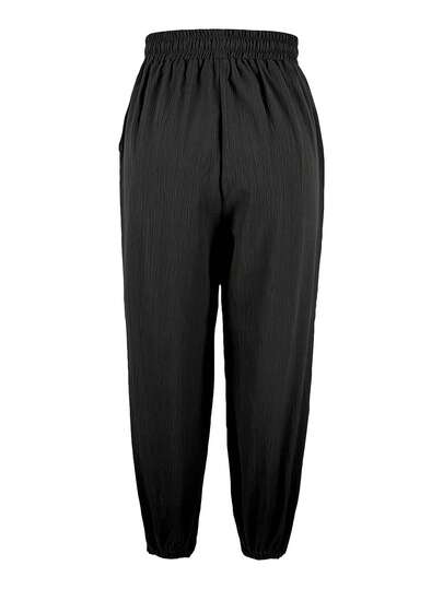Women's Casual Solid Button Ankle Pants, Fashionable And Suitable For Summer - Black - View 1
