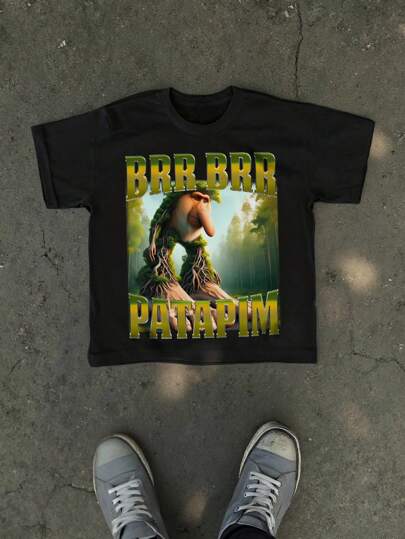Men's Regular Brr Brr Patamin Italy Brainrot Unisex T-Shirt, Italy Brainrot Shirt, Brainrot Vintage Bootleg Shirt, Unhinged Clothes, Weird Tee Casual American Minimalist Men's Graphic Print Short Sleeve Crew Neck T-Shirt - Black - View 1