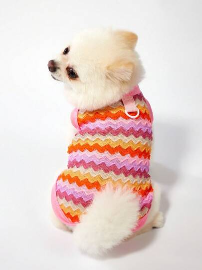 PETSIN Lightweight Breathable Casual Vacation Cat Vest Pet Clothing For Summer, Cat/Dog Wear, Adjustable Leash, Pink Wave - Multicolor - View 1
