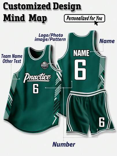 2pcs Personalized Men's Basketball Jersey Customized Graphic,Logo,Name&Design Sports Tank Top+Shorts,Teamwear For School Basketball Team Spring/Summer,Stylish,Fashion,Hipster,Casual,Minimal Chic,Personalized,Customized,Custom,Unique,Guy Costumes,Capsule Wardrobe,Men Basic/Street Style,Ideal Gifts For Him,Boyfriend,Family,Friends,For Birthdays,For Vacation/Holiday,For School/Competition,For Sports/Climbing - Green - View 1