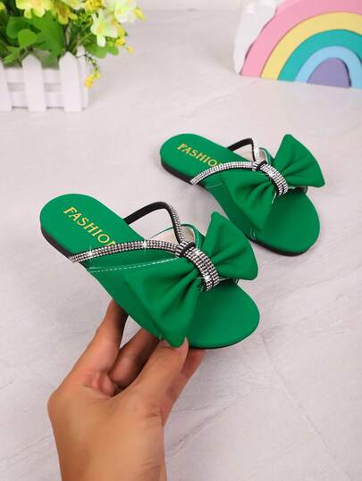 2025 Spring & Summer Children's Fashion Casual Outdoor Wear Butterfly Rhinestone Versatile Sandals, Kids' Beach Slippers - Green - View 1