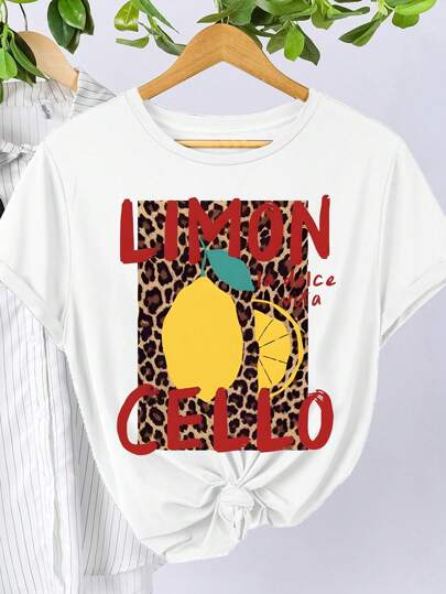 Flirla Plus-Size White Short-Sleeved Retro Casual Lemon Print T-Shirt For Women - White - View 6