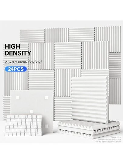 [MODX] 24pcs Acoustic Studio Soundproofing Foam Panels - Professional Grade Soundproofing For Home Theater, Gaming Room, Studio - 12" X12"X1", Easy To Install, Available In Black/White/Gray Wallpaper Wall Paper Wall Stickers Room Decor Wall Decor Wall Sticker - White - View 1