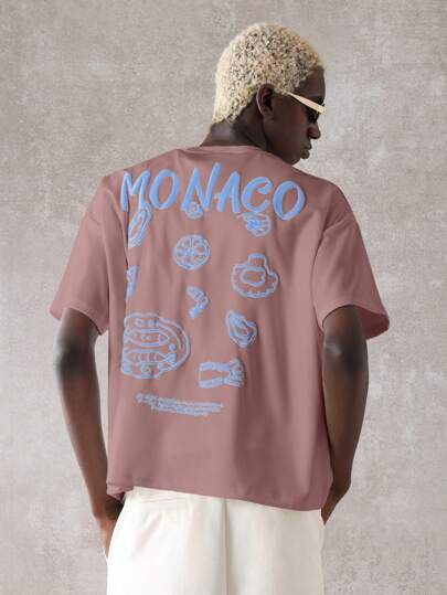 SUMWON Summer Statement Monaco Beach Tee Shirt Oversized Boxy Fit Casual Streetwear Vacation Resort Graphic Print - Pink - View 1