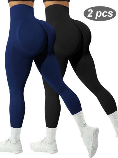 Gameset SHEIN Sport 2pcs Solid Color High Waist Seamless Stretchy Tight Yoga Leggings - Multicolor - View 1