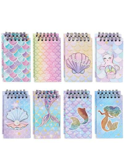 8/16pcs Shiny Mermaid Themed Spiral Notebooks, Mini Coil Memo Pads, Portable Notebooks, Mermaid Themed Party Favors, Birthday Party Souvenirs, Bridal Shower Gifts, Underwater/Ocean Theme Party Supplies, Mermaid Themed Birthday Party Decorations, Baby Shower Decor, Gender Reveal Party Supplies, Suitable For Home, Office, Shopping Lists, Daily Records, Holiday Decorations, Mermaid Decor - Mermaid - View 1