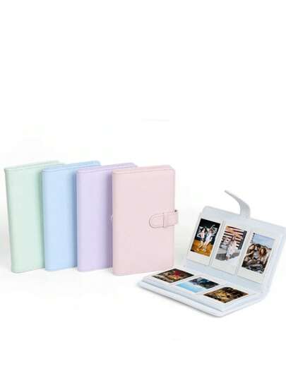 1pc PU Leather Card Collection Book For Tickets, Polaroids & Memories, Macaron Green/Pink Aesthetic Gift, Compact Travel Scrapbook For Birthdays, Graduation, Party Favors - Multicolor - View 3