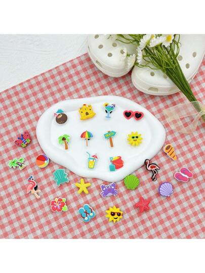 26Pcs Cute Summer Beach Vacation Cartoon Shoe Charms Decoration,Suitable For Hollow Out Clogs, Beach Sandals, Flip-Flops - 26Pcs - View 1