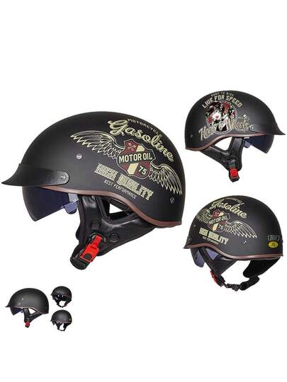 1Pc Motorcycle Helmet Black Moto Anti Fall Helmet Motobike Helmets Riding Half Helmet Motocross Helmet Four Seasons Use ABS Material Motorcycles Accessories Rider Gift - Multicolor - View 1