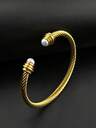 1pc Elegant & Refined 4mm 18k Gold Plated Stainless Steel Cable Twist Open Heart Shaped Bracelet, Suitable For Women/Girls Daily Wear, Anniversary, Birthday, Party Jewelry Gift