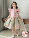 Dazy Kids 2 Pieces Short Sleeve Shorts Set With Bow Decor For Young Girls,Girls Summer Outfits