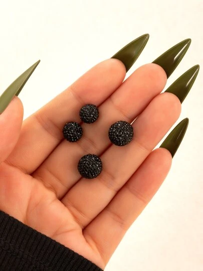 imoli 2pairs Ball Stud Earrings - Black - View 3
