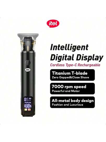 itel ITR-35 LED Display Hair Clipper, Professional Precision Carbon T-Blade, All-Metal Design, Suitable For Men, For Hair Cutting And Styling - Black - View 1