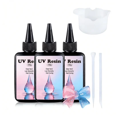 Qiao Brand 100/200/300g UV Resin - Fast Curing, Crystal Clear, Odorless, Low Viscosity, High Hardness. UV Resin Kit Suitable For DIY Jewelry Making, Casting And Coating Crafts. - Multicolor - View 3