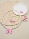 1set Kids' Girls' Cute Bowknot & Beaded Necklace Bracelet Ring Earrings Set
