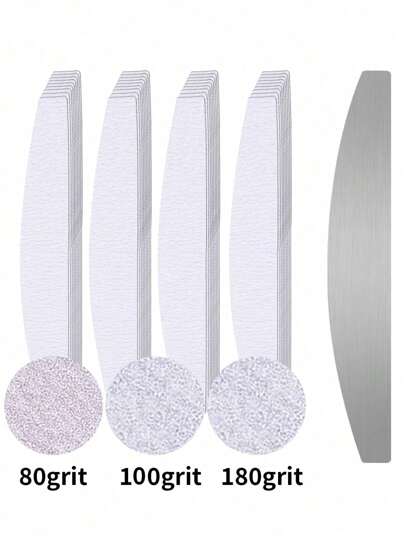 klimonla 10/30pcs Nail Files, Manicure Sanding Strips, Metal Sheets, Self-Adhesive, Replaceable Half-Moon Nail Files, Edge Trimming & Polishing Strips, For Nail Polish, Washable Polishing Strips - Grey - View 9