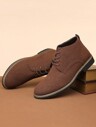 1 Pair Men's Metal Decor Pointed Toe High-Top PU Leather Upper Rubber Sole Slip-On Flat Business Casual Chelsea Boots, Suitable For Fashion Parties