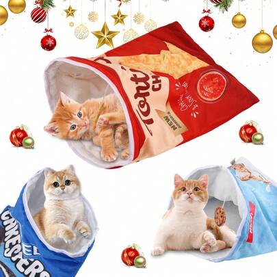 FULED Cat Tunnel Toy, Cat Drill Bag, Cat Birthday Gift, Full Body With Crumpled Paper Cat Tunnel Bag (Makes Sound,Sound Is Attractive To Cats, Not Recommended For Nighttime Use) Foldable Interactive Cat Drill Bag Pet Toy With Fluffy Ball, Cat Tunnel Bag, Indoor Cat Self-Interactive Toys - Multicolor - View 1