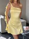 Đầm satin màu trơn với thiết kế bèo nhún ở vai và thắt eo, kiểu dáng nữ tính, tôn dáng, thích hợp cho hẹn hò, dự tiệc hoặc đi nghỉ mát.