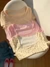 2pcs Striped Bow & 67 Graphic Print Pajama Set For Women, Comfortable Short Sleeve Round Neck Pullover Shirt And Elastic Waist Shorts, Stylish For Outdoor, Indoor, All Seasons