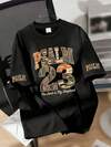 Plus Size Women's Retro Rose And Newspaper Cartoon Letter Pattern Prints On The Street, Korean-Style Comfortable Retro Fashion Commuting Versatile Y2k Plus Size Women's Clothing, Regular Niche Punk Style Black Round-Neck Short-Sleeved T-Shirt, Retro Series Comfortable T-Shirt, Easily Create Retro Casual Wear, Suitable For Daily Commuting, Leisure Outings, Daily Outfits, Classic Retro Style Plus Size Women's Clothing Summer