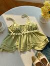 Comfortcana Plus Size Solid Color 3D Floral Pattern Contrast Ruffle Hem Casual Camisole Top For Holiday, Summer 2026 New Arrival Ruffle Tops Cute Summer Top Babydoll Tops Woman