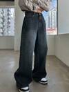 EMERY ROSE Quần jean nữ dáng suông, cạp cao, ống rộng, chất liệu nhẹ, màu xanh đậm, kiểu dáng thường ngày, đa năng.