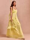 Enchnt Đầm thời trang nữ Jacquard nhiều lớp xếp nếp, thắt dây vai, kiểu dáng thanh lịch.
