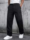 SLATEMANN Men's Straight Leg Pants, Black With White Line Design, Suitable For Boyfriend/Husband Gift, Streetwear, Everyday Wear, Date Outfit, Y2K Style,Men Old Money,Daily Leisure, Weekend Trips, Outdoor Activities, Travel Expeditions, Relaxed Work Environments Or Semi-Formal Occasions, Boyfriend/Husband Gift, Anniversary /Birthday Gift Party Summer Vacation Holiday,Wedding,Spring To Summer,Mardi Gras,Men's Fashion Black Trousers With White Stitching Loose Straight Leg Design,Black Slacks For Men,Pants For Men Straight Loose,Men Suit Baggy,Uniform School Pants