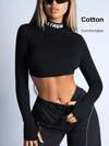 SHEIN ICON Letter Graphic Mock Neck Crop Bikercore Black Tee