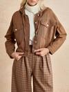 SHEIN Frenchy Flap Pocket Drop Shoulder Drawstring Hooded Denim Jacket Winter Brown Casual Spring
