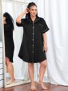 LuxeNights Plus Pocket Patched Button Up Contrast Piping Satin Pajama Nightdress, Moo Moo