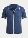 GRDR Men's Turndown Collar Twist Knit Short Sleeve - Casual Minimalist Fashion T-Shirt