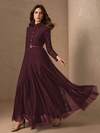 SHEIN BAE Đầm đuôi cá dài tay màu nâu trơn hở lưng gợi cảm, ôm sát, thanh lịch, dáng dài, đầm dệt kim dài cho mùa thu/đông