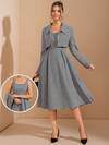 Veilorie Women's Casual Solid Color Waist Cinched Long Sweatshirt Dress In Fall/Winter