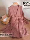 CosyJoli Plus Size Women Contrast Lace Crinkle Fabric Long Sleeve Shirt And Shorts 2 Piece Vacation Casual Set Cottagecore Clothes French Style Dress Spring Outfit Women Spring Dress For Women