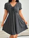 Solflare Women Plus Size Slim Fit Short Sleeve Dress With Ditsy Floral Print, For Summer,Beach Dress Sundress,Holiday Outfits Boho