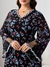 SHEIN Najma Women's Floral & Faux Pearl Print V-Neck Long Sleeve Elegant Arabic Style Maxi Dress, Spring/Autumn
