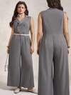SHEIN Unity 1pc Women's Casual Sleeveless Striped Jumpsuit With Lapel Collar And Waist Cinching, Suitable For Spring/Summer