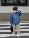 SHEIN 2pcs/Set Young Boy Casual Denim Effect Shirt And Loose Straight Leg Pants Outfit, Suitable For School & Daily Wear, Autumn/Winter