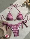 Vaytide Bộ đồ bơi 3 mảnh họa tiết chấm bi in hình tam giác nhỏ, thắt nơ bên hông, tiệc trà chiều mùa hè mới cho nữ