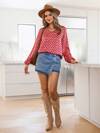SHEIN LUNE Women's Casual Geometric Print Lantern Sleeve Blouse