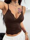 Coolane Women's Summer Going Out Vacation Vintage Cute Daily Wear Basic Contrast Lace Bow Slim Fit Brown Tank Tops